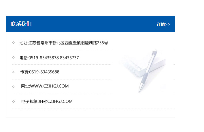 地址:常州市新北區友邦商務大廈1幢16、17層  電話:0519-85101652  傳真:0519-85112595  郵編:213022  網址:www_cz-jiayue_cn.ledchijing.com  郵箱:xiajifengaa@163.com